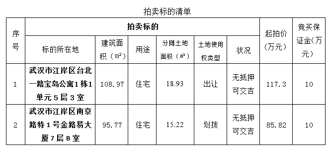 武漢兩處住宅房產(chǎn)-拍賣公告